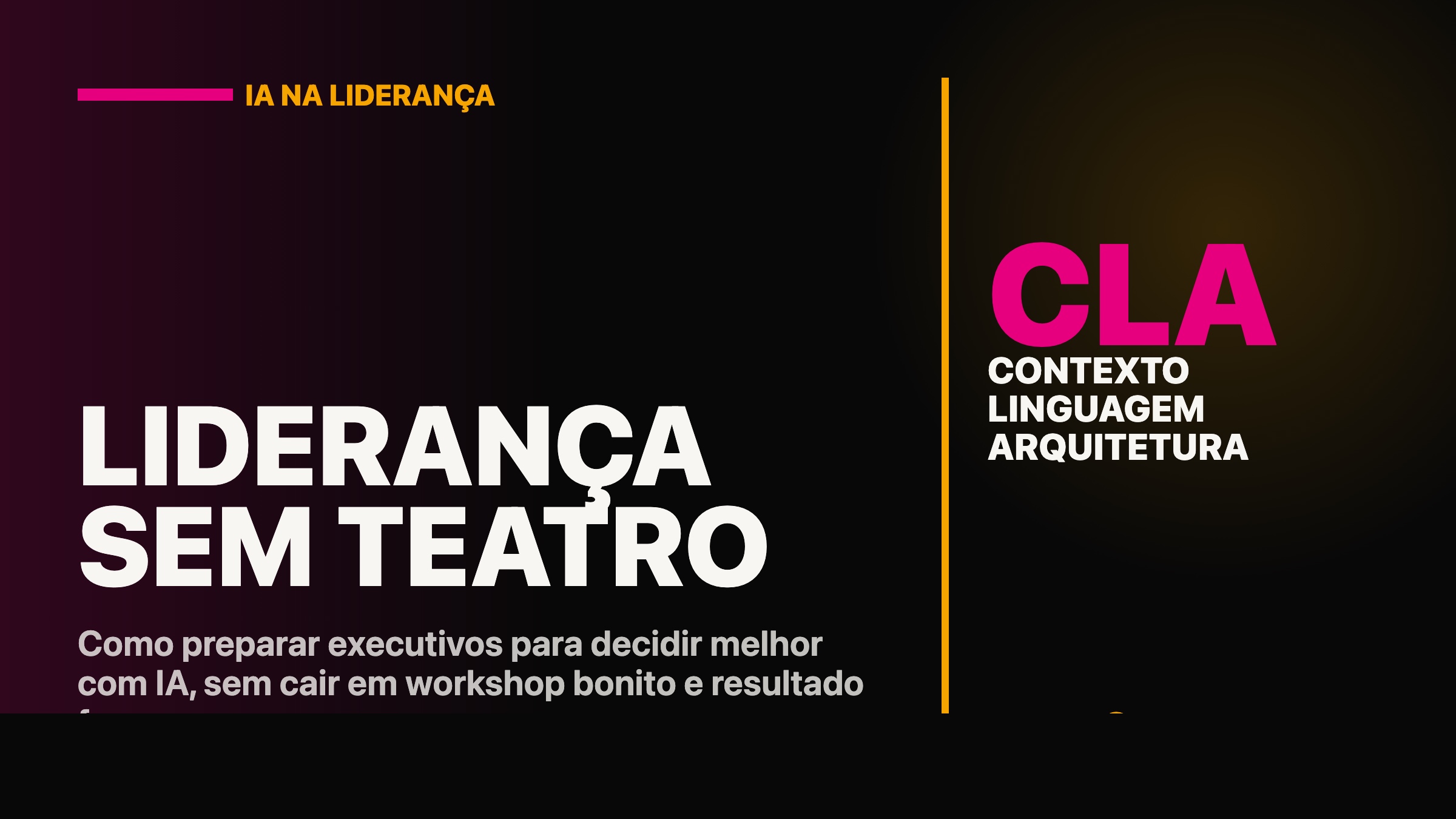 A preparação da liderança precisa acontecer em três camadas. Eu chamo isso de framework CLA: Contexto, Linguagem e Arquitetura de decisão. É simples de lembrar, o que já o torna mais útil do que metade dos comitês criados para "acompanhar tendências".